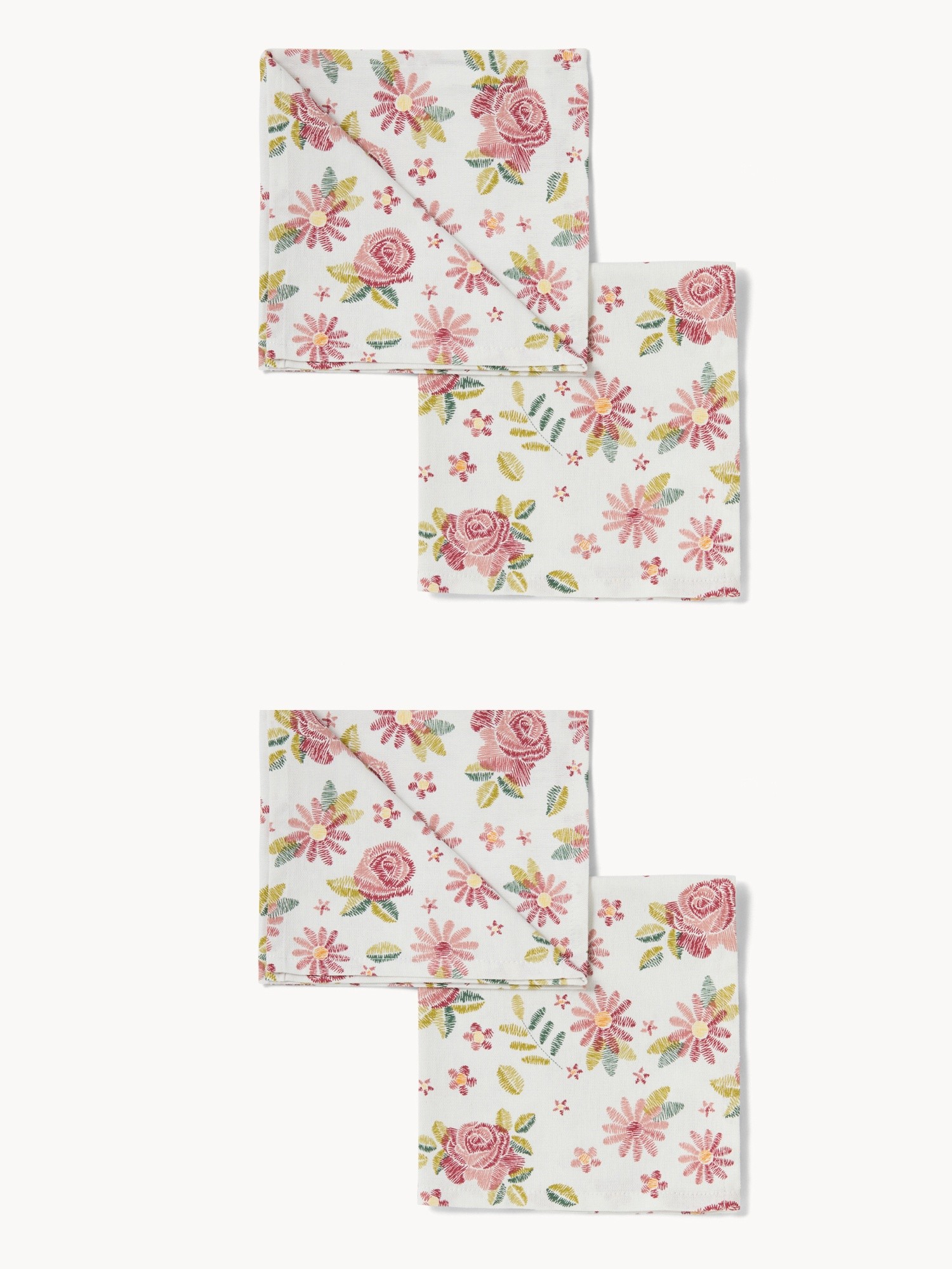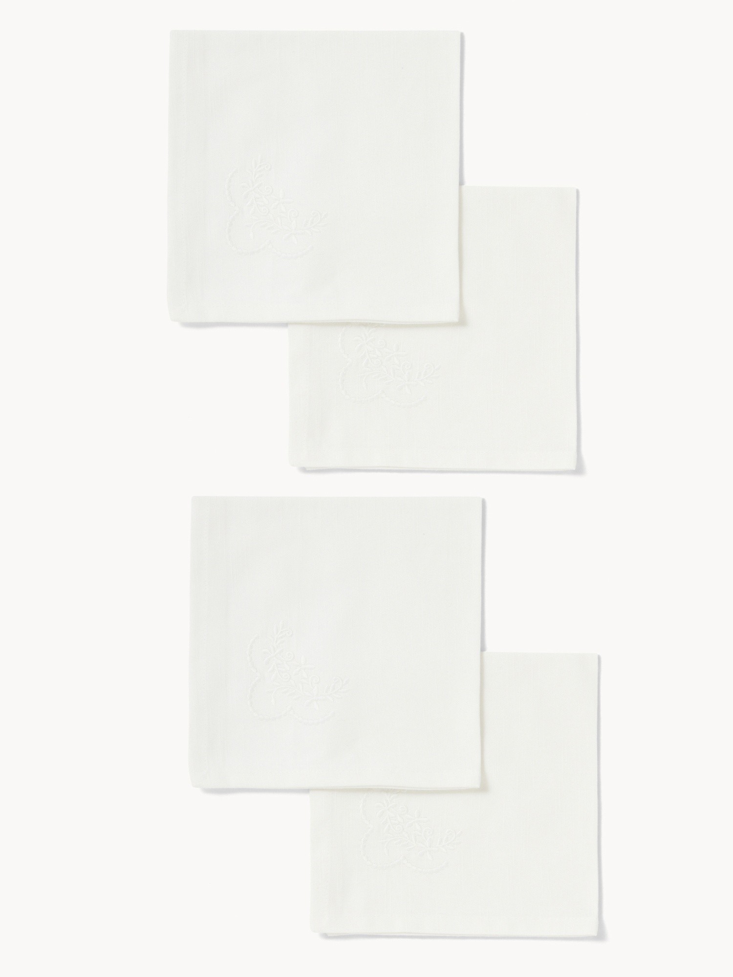 Set di 4 tovaglioli in puro cotone con ricamo floreale - Prezzo di lancio