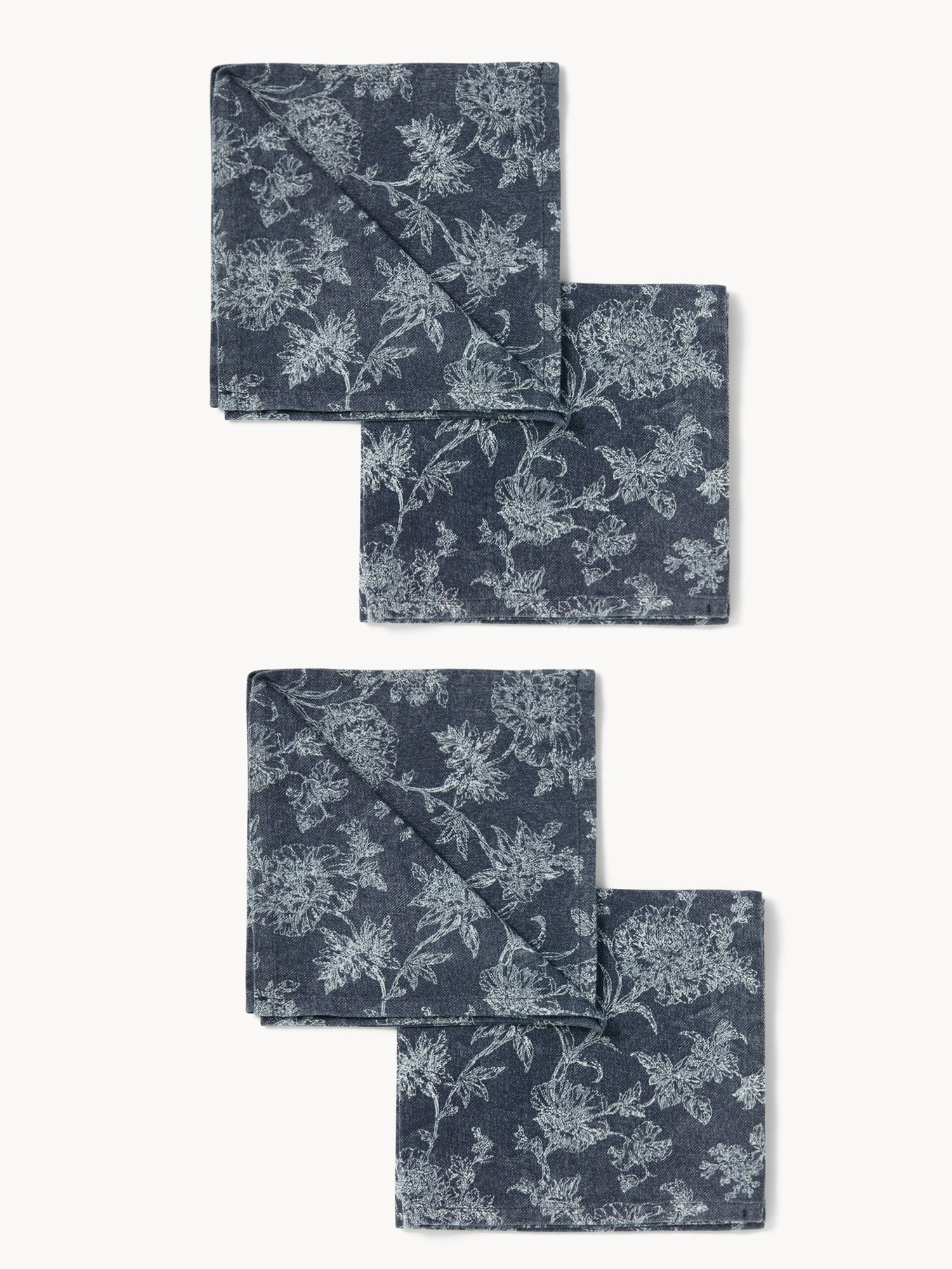 Set di 4 tovaglioli in twill di cotone con stampa floreale effetto denim - Prezzo di lancio