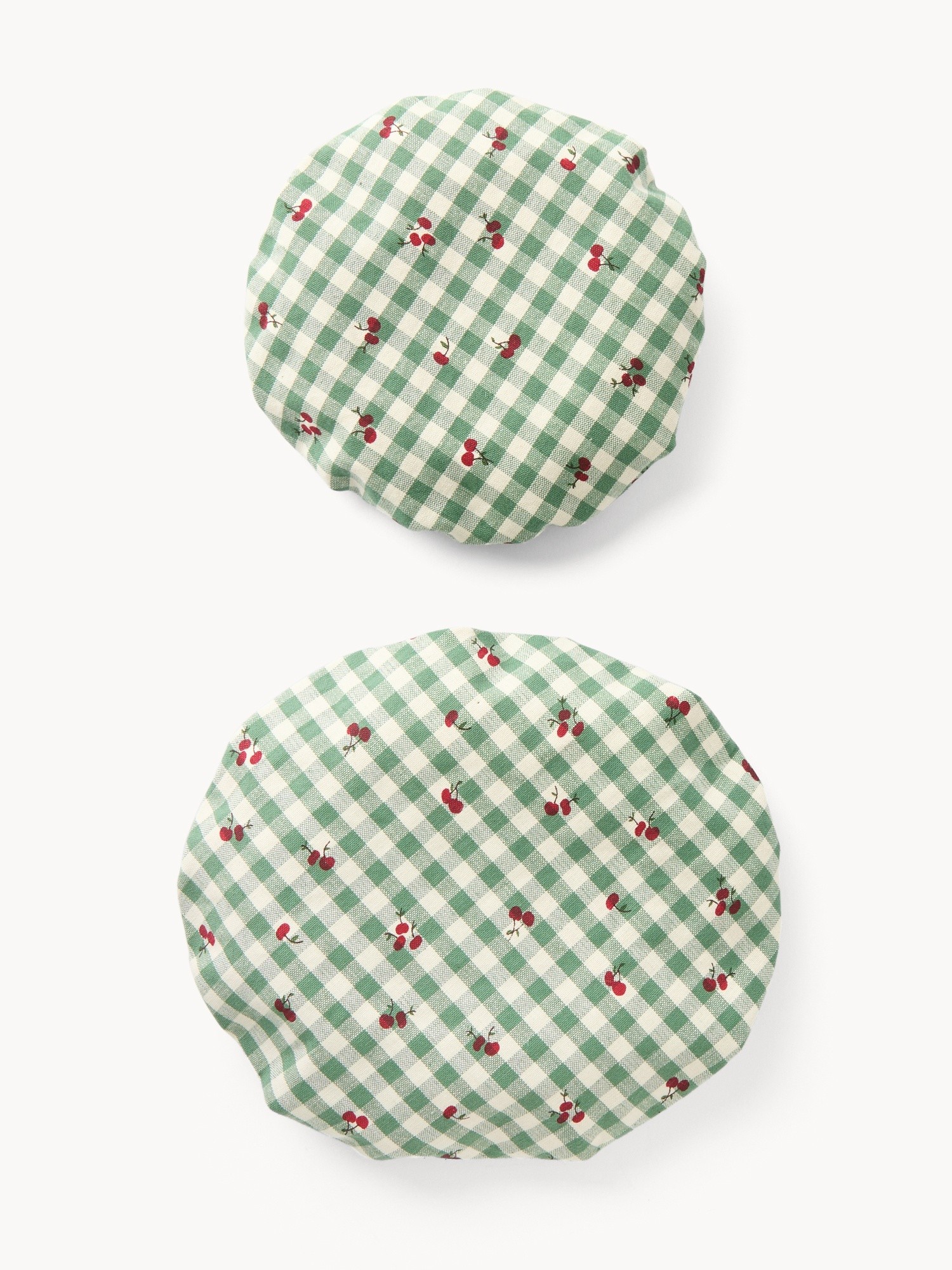 Set di 2 copri ciotole in puro cotone vichy con stampa ciliegie e volant - Prezzo di lancio