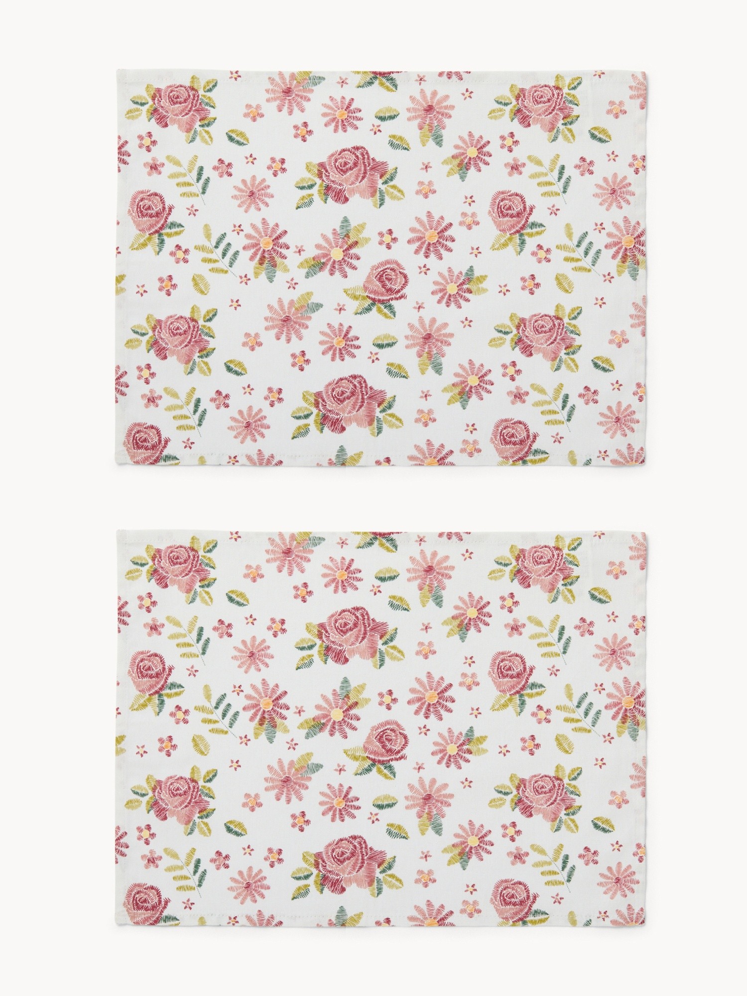 Set di 2 tovagliette in panama di cotone con stampa roselline - Prezzo di lancio