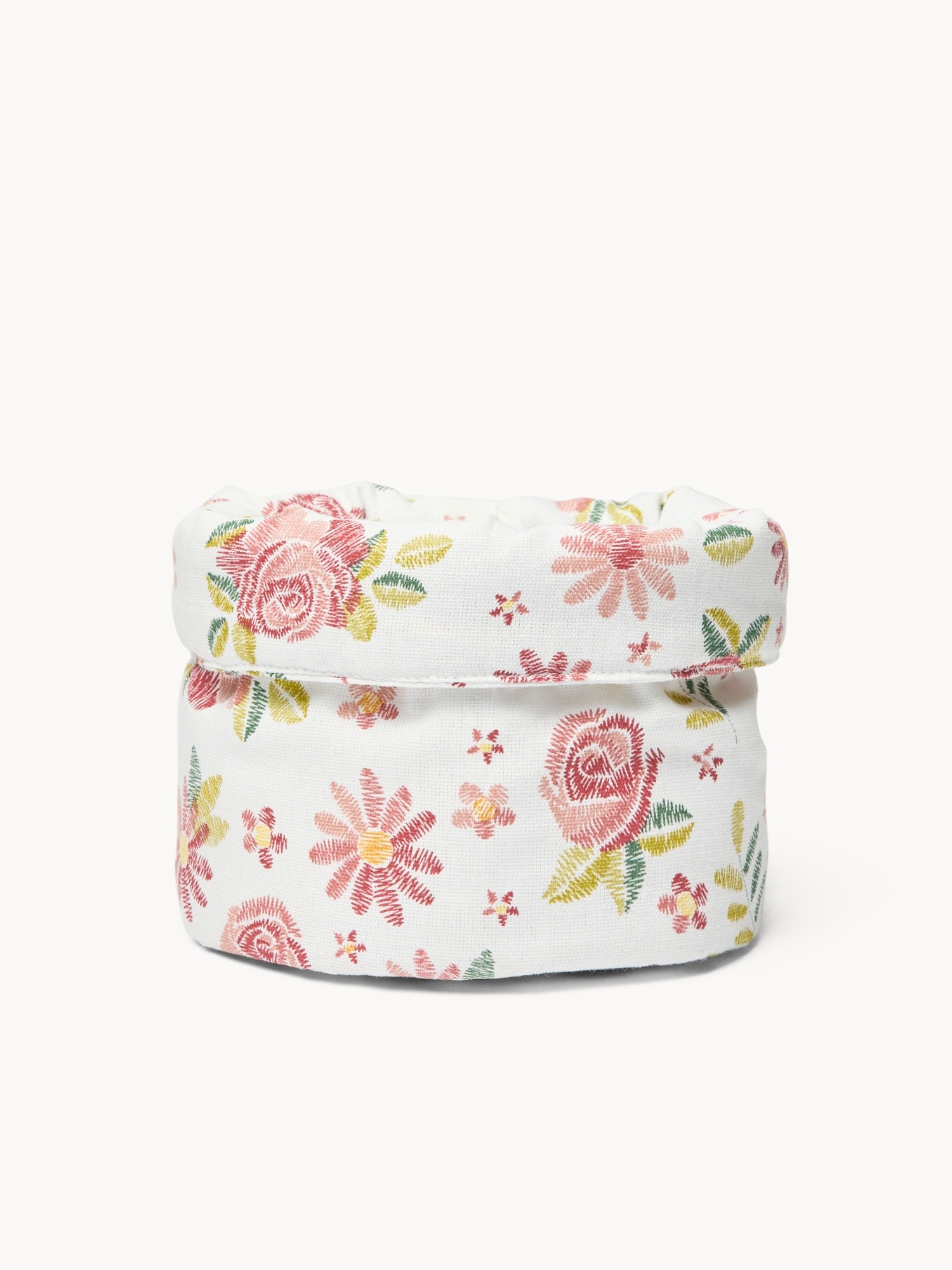 Cestino in panama di cotone con stampa roselline - Prezzo di lancio