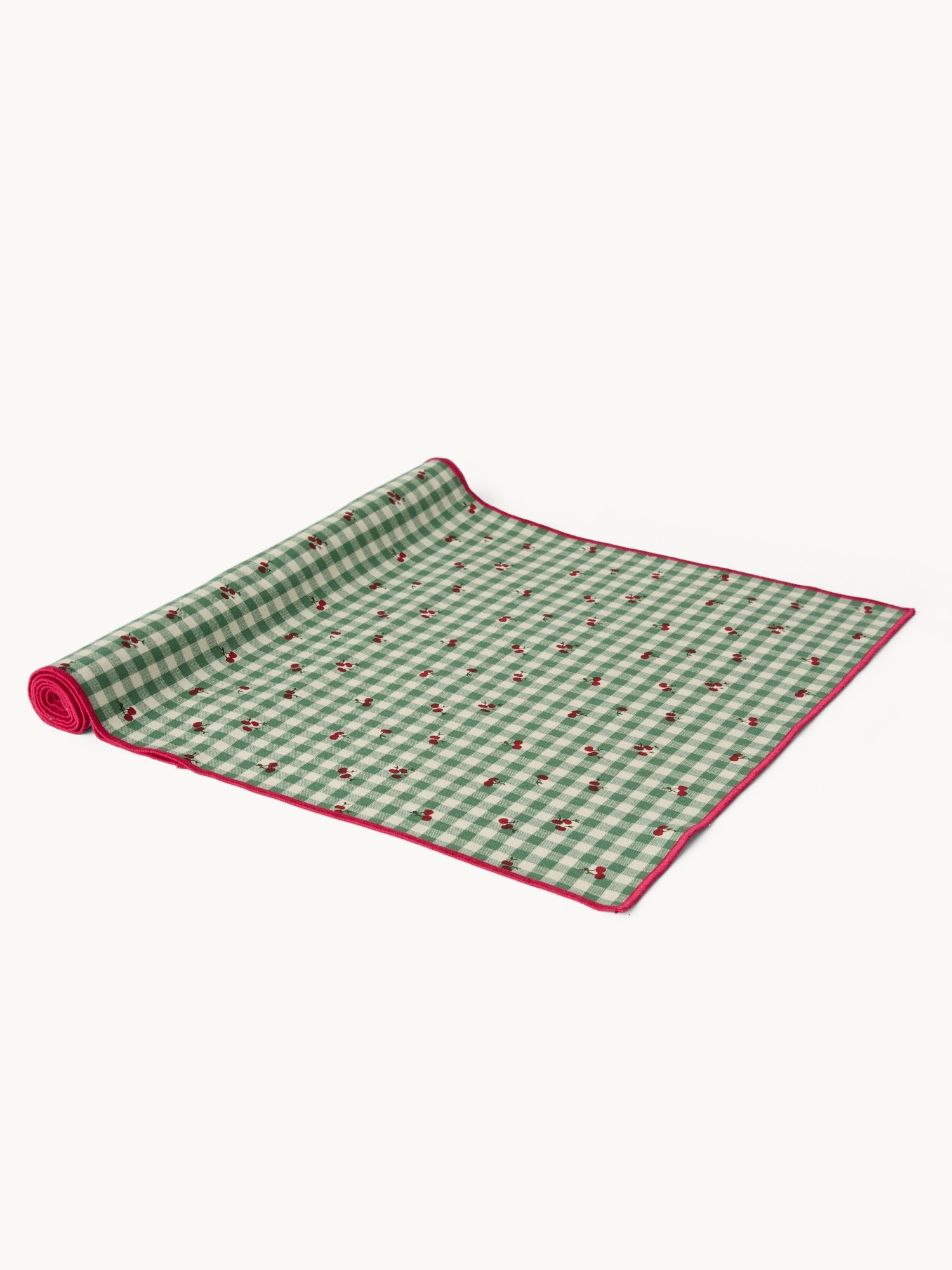 Runner in puro cotone vichy tinto filo con stampa ciliegie - Prezzo di lancio