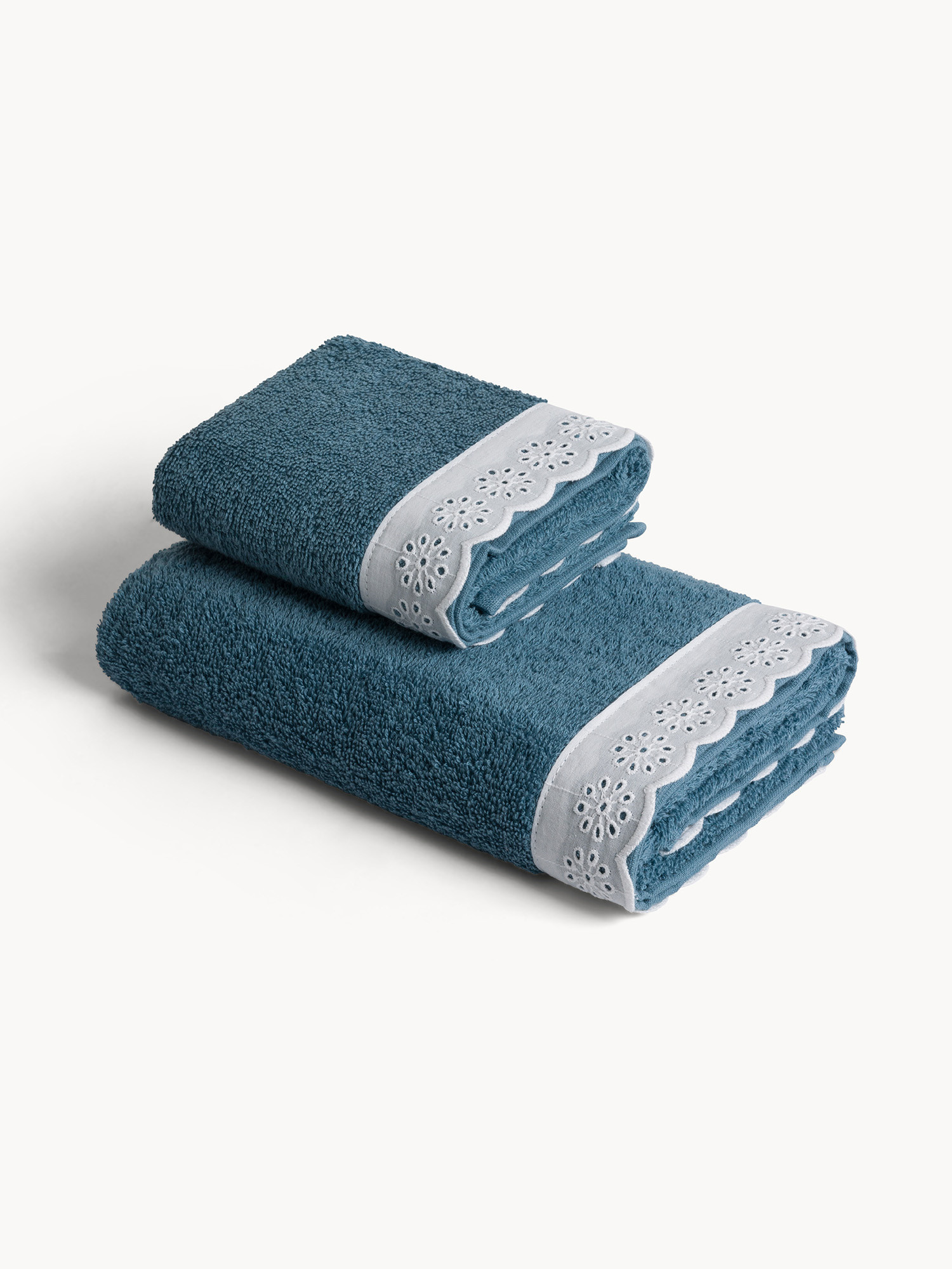 Asciugamano in puro cotone bordo sangallo