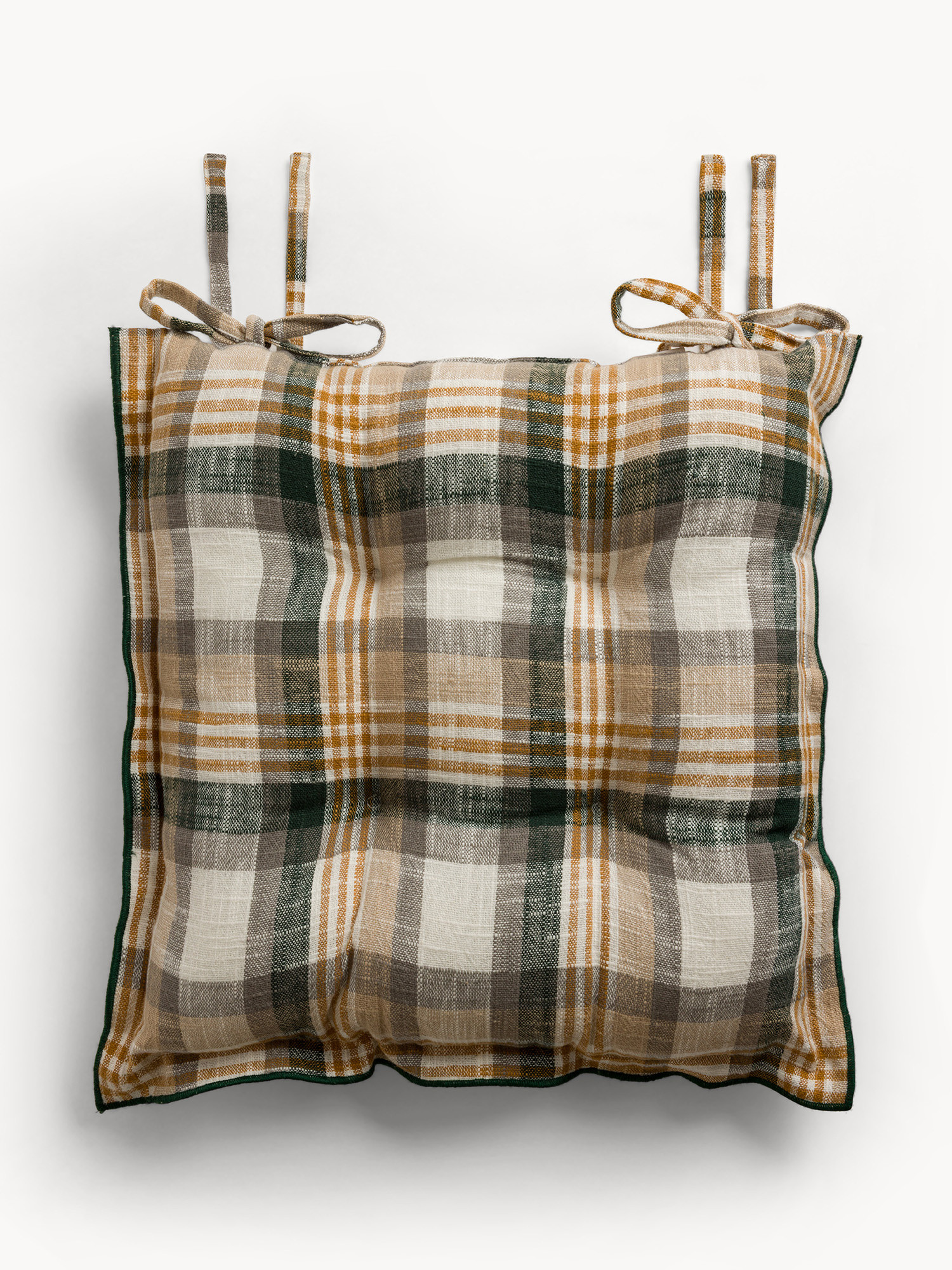 Cuscino da sedia con lacci motivo check in puro cotone tinto filo