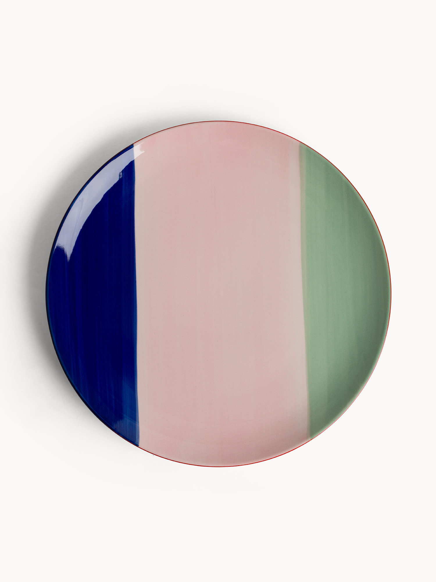 Piatto piano in ceramica a righe colorate