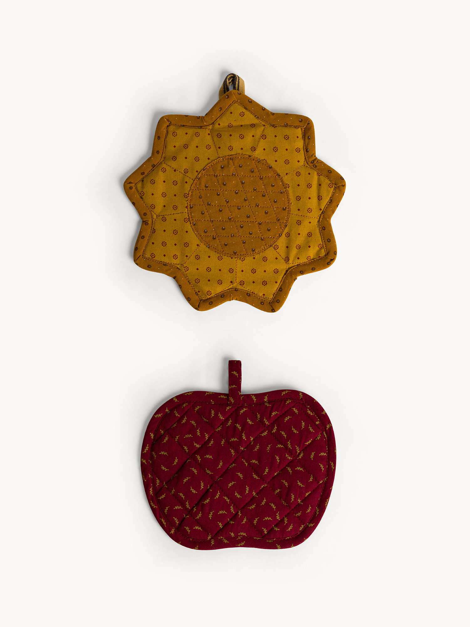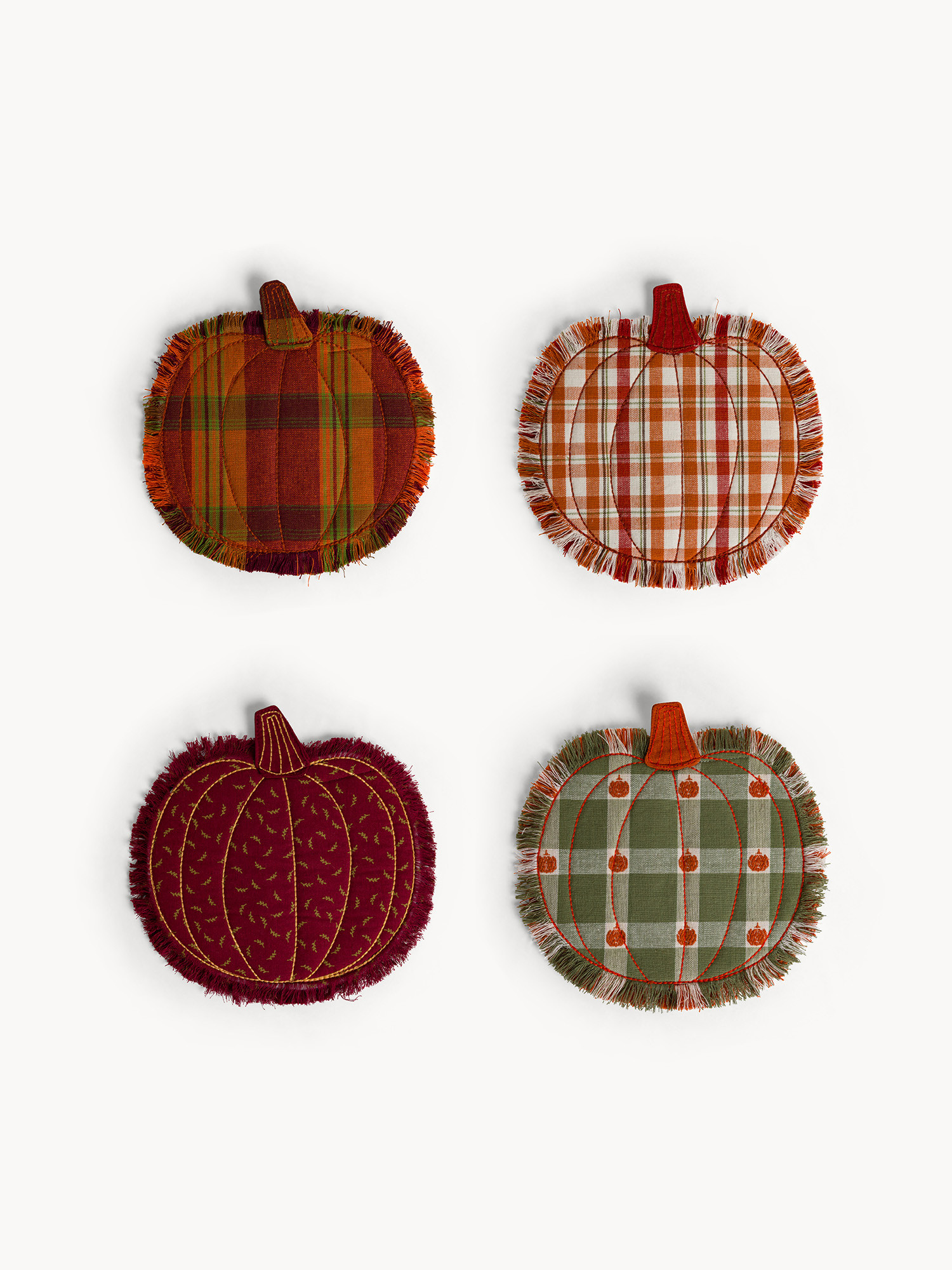 Set 2 presine in puro cotone tinto filo motivo check e ricamo zucche allover