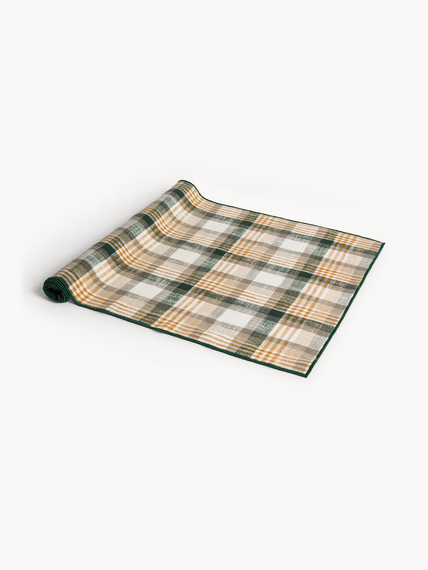 Runner motivo check in puro cotone tinto filo con overlock a contrasto