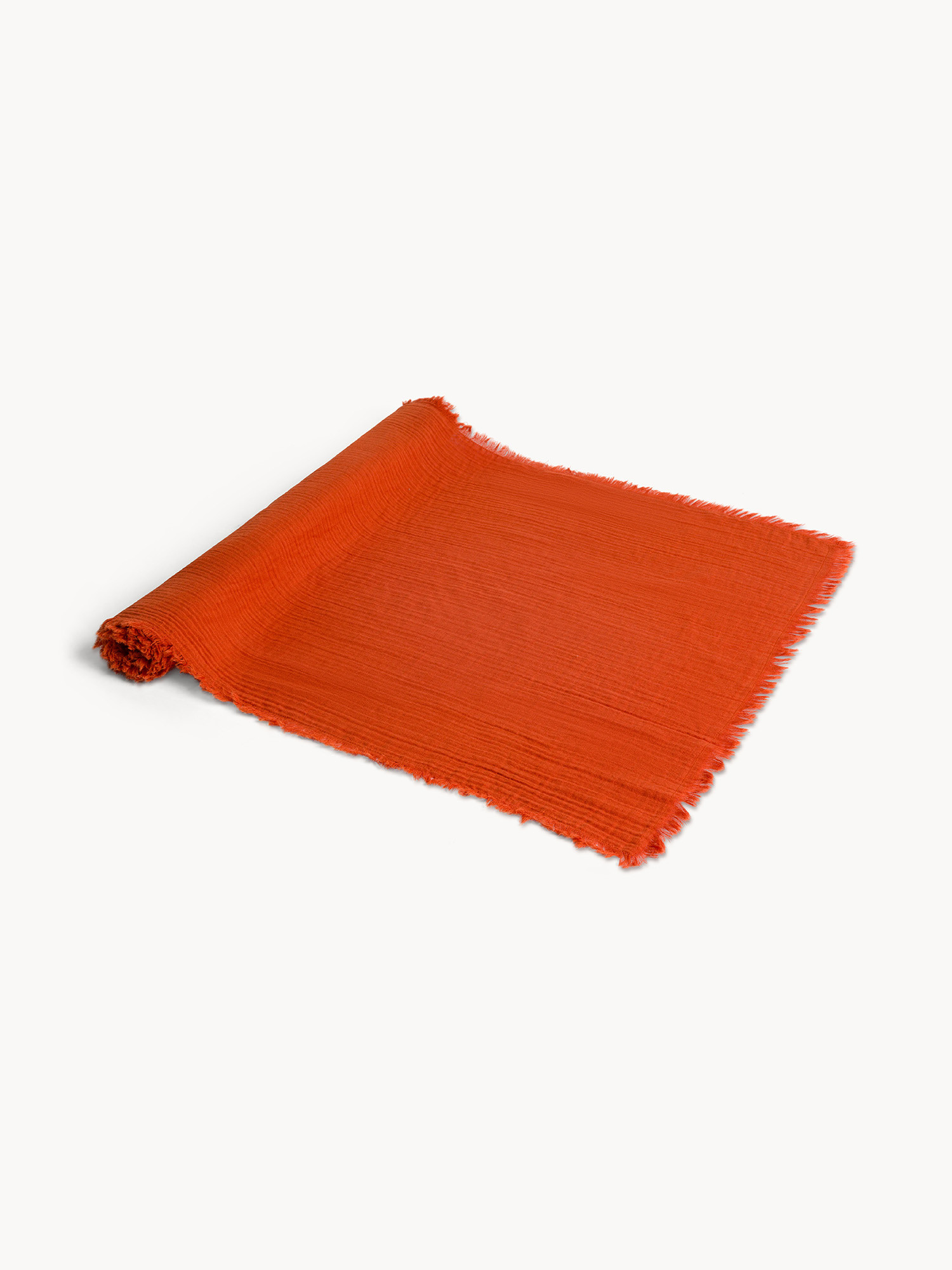 Runner in mussola di puro cotone con frangette